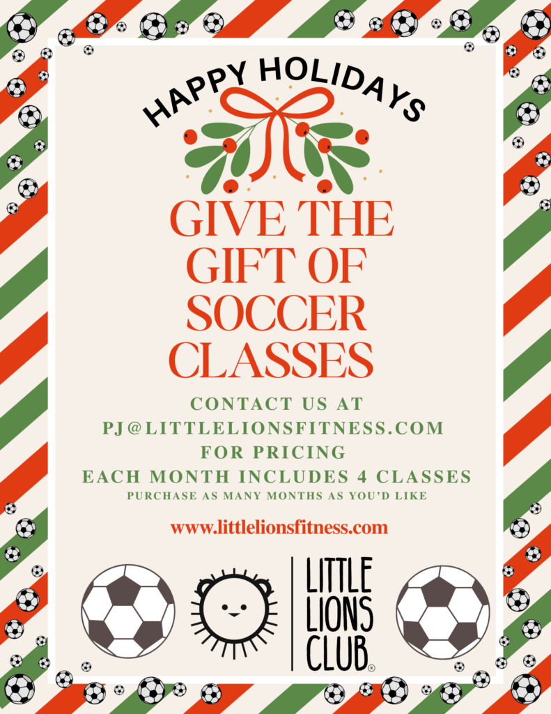 If you’re looking for a sweet and magical holiday gift idea this year, Little Lions Club is offering Holiday Gift Vouchers — the perfect experience gift for your little one! Instead of another toy under the tree, families can gift the joy of a month of soccer classes (4 classes total).
